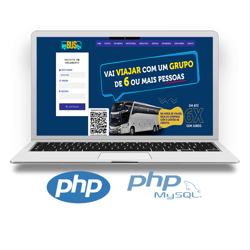 Site para Transportes e Agências de Viagens 100% responsivo em PHP MySQL com Painel Administrador, fácil edição pelo painel, feito em PHP 7.4 MySQL, utilizando os Framework Bootstrap v3.3.7 e Font Awesome 5.7.0 para agiliza maior performance de navegação.